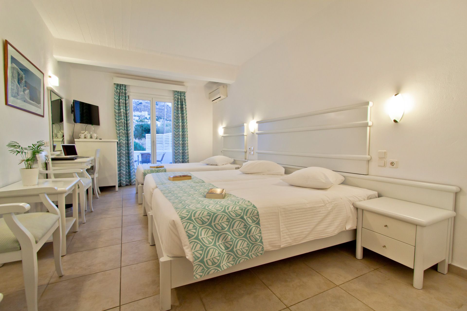 All rooms are elegantly decorated with rich colours schemes that complement the traditional Cycladic style of the hotel. Although the decorative style is uniformed throughout the Yannaki hotel, every single part of it has its own identity thus creating a cosy and homely atmosphere.