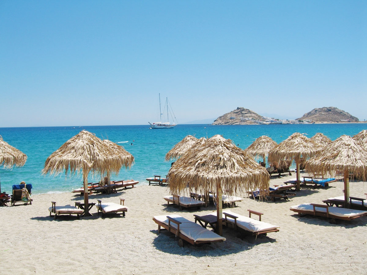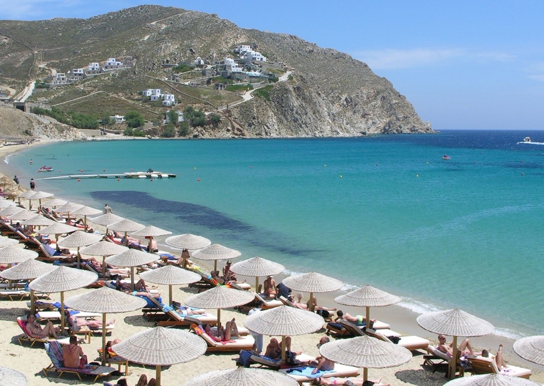 In the east part of island,12 kilometers away from the center with easy access by car or boat from Platys Gialos is Kalafatis beach. Beautiful, big but less organized beach with beach-bar and restaurants. There is also a bus from the center of Mykonos to Kalafatis beach with less routes during the day.