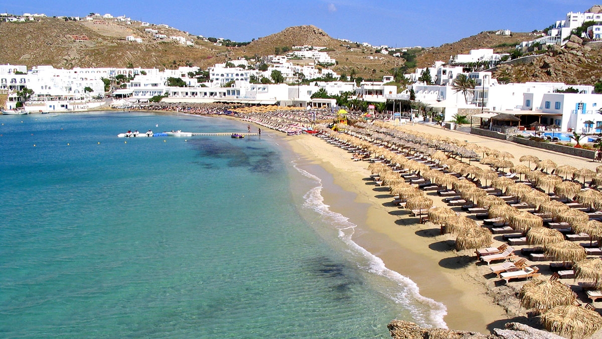 The beach of Ornos is located in the south part, 3,5 kilometers away from the center of Mykonos. Caster sand, blue water, no wind so you will definitely enjoy your swimming. A bustling beach, full of young people, families and tourists. Very good organized with sunbeds, umbrellas, sofas, beanbag, restaurants and beach bars.